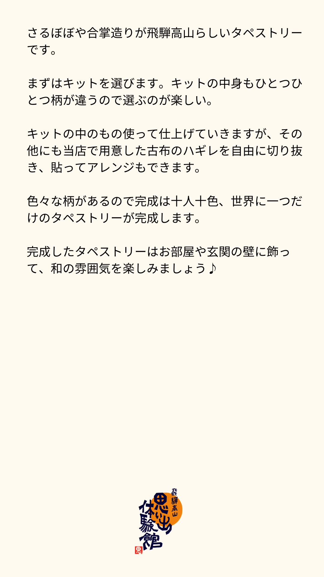 飛騨の里店和風タペストリーづくり